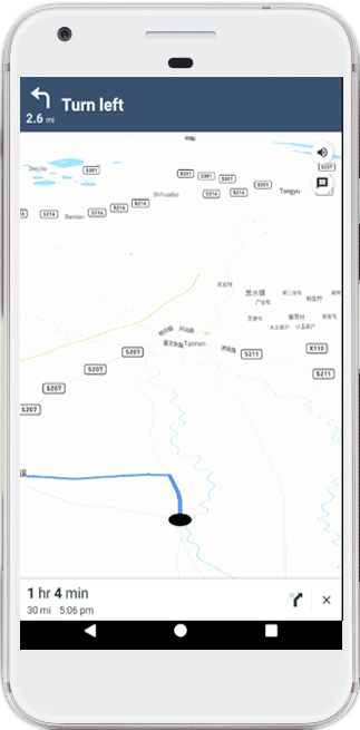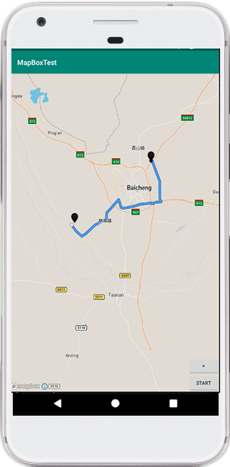 The seconds image is demonstrating the turn by turn navigation created by the mapbox team.
